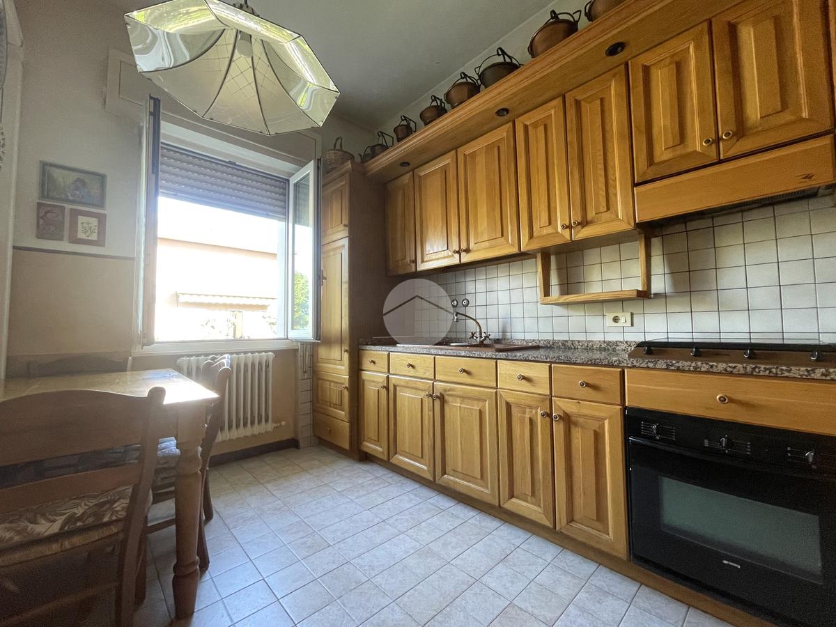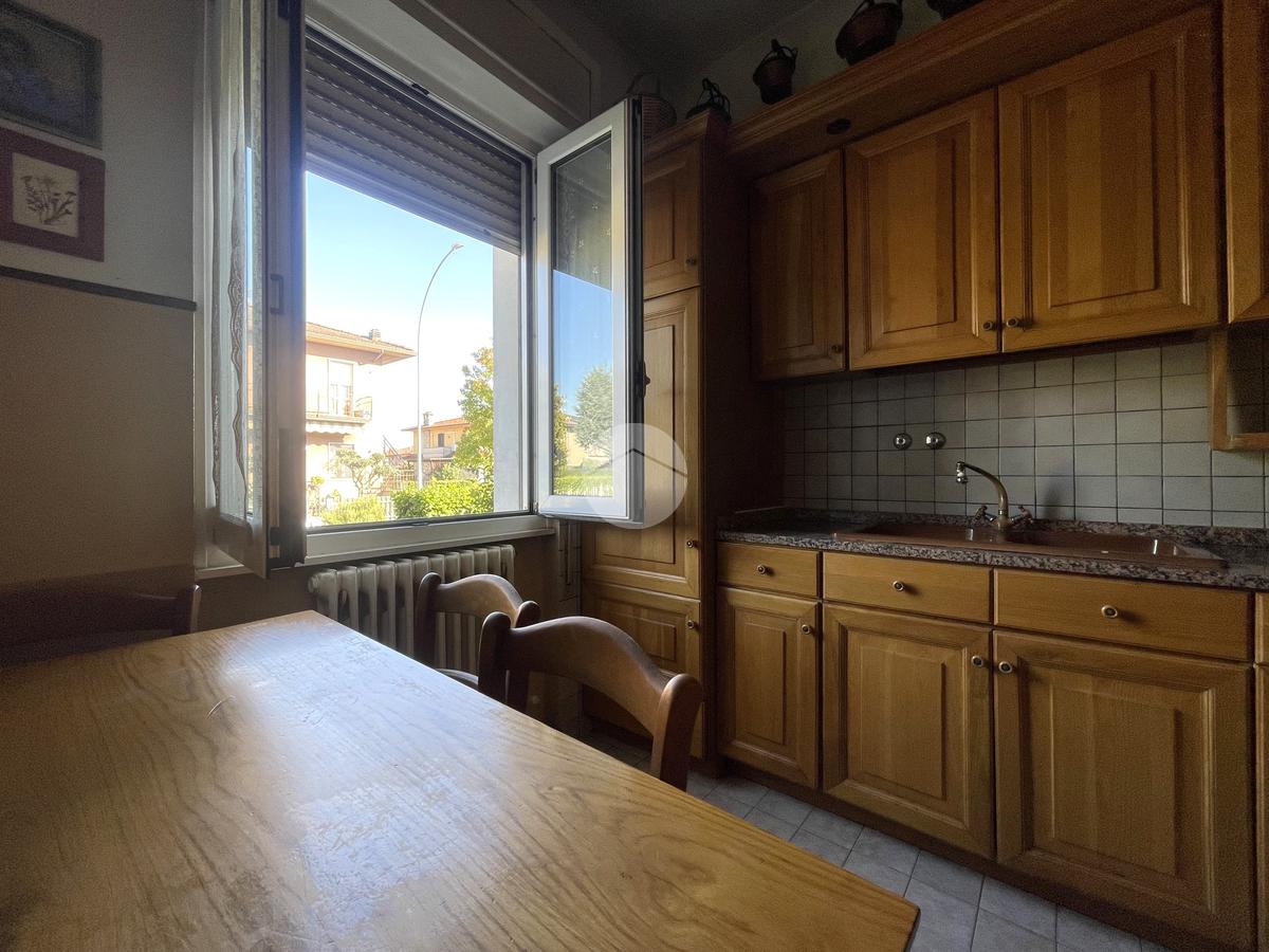 L’abitazione si apre su un corridoio funzionale, che separa la cucina abitabile dal luminoso soggiorno, dotato di uscita sul balcone con affaccio sul verde. La zona notte ospita due camere da letto di generose dimensioni e un bagno finestrato completo di doccia.